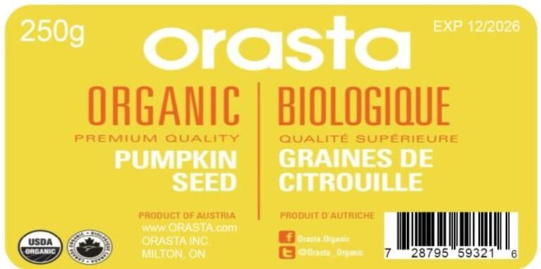 والعلامات التجارية هي بذور اليقطين الأوروبية العضوية الخام من Fine Wholesome Goods، والتي تُباع في الفترة من 24 أبريل 2025 إلى 6 مايو 2025، في متجر ذا سويت بوتيتو في ذا جانكشن، وبذور اليقطين العضوية الأوروبية (بدون علامة تجارية) التي بيعت من مارس 2025 إلى 8 مايو 2025 في متاجر “بيتشز ناتشورال فودز” في منطقة “بيتشز”، وبذور اليقطين العضوية ” Orasta” التي بيعت من 17 أبريل 2025 إلى 10 مايو 2025 في مزرعة “فييستا” في “كريستي بيتس”.