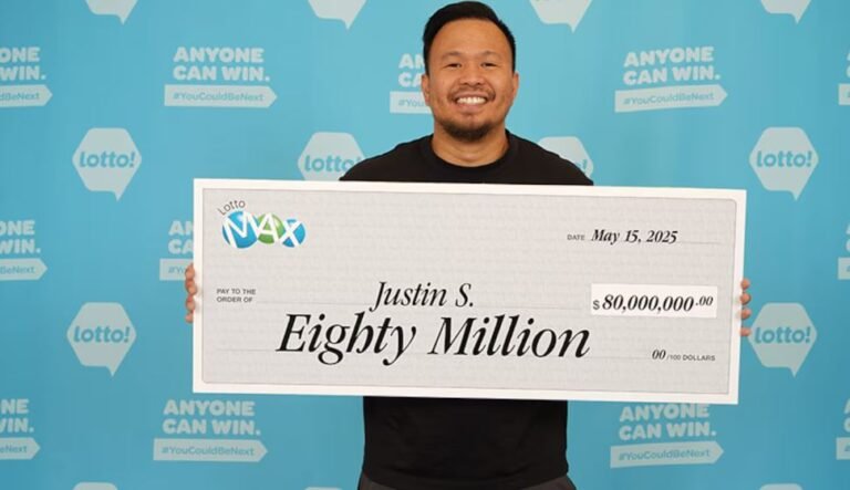 وحصد جاستن سيمبوريوس، البالغ من العمر 35 عامًا والمقيم في مدينة ساري، حصد الجائزة الكبرى في سحب “لوتو ماكس” بتاريخ 9 مايو، بعد أن طابق الأرقام السبعة كاملة، ليظفر بالجائزة القياسية البالغة 80 مليون دولار كندي.