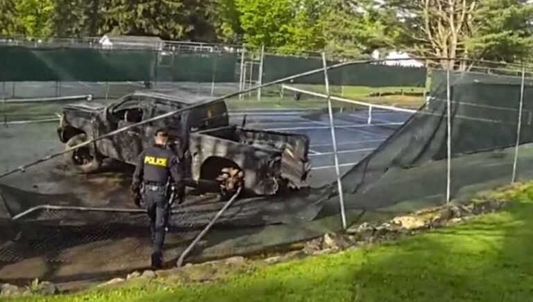 هلا كندا – تحقق الشرطة في حادثة وقعت خلال عطلة نهاية الأسبوع بمناسبة عيد فيكتوريا في بلدة مسكوكا ليكس، أونتاريو حيث اصطدم سائقًا بشاحنته الصغيرة بملعب تنس في ملعب غولف محلي.