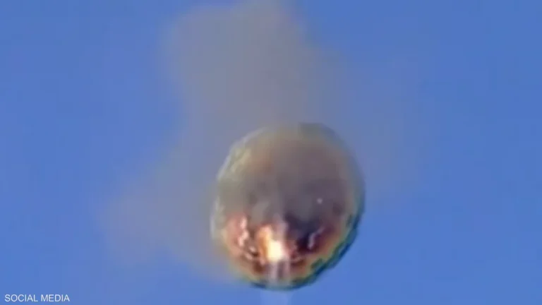 وأظهر مقطع مصور أعمدة من الدخان تنبعث من المنطاد الذي شبت فيه النيران، فيما تهاوى نحو الأرض.