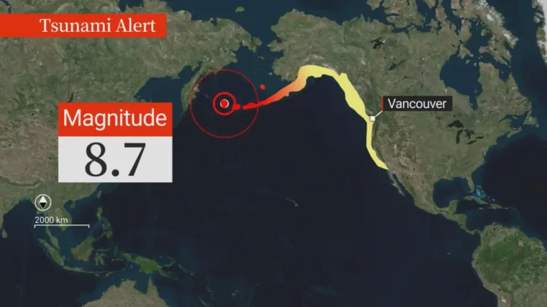 أعلنت السلطات الكندية، مساء الثلاثاء، عن تحذير من تسونامي على خلفية زلزال قوي بلغت شدته 8.7 درجات ضرب قبالة سواحل روسيا، ما تسبب في حالة استنفار شملت معظم المناطق الساحلية لمقاطعة بريتش كولومبيا.