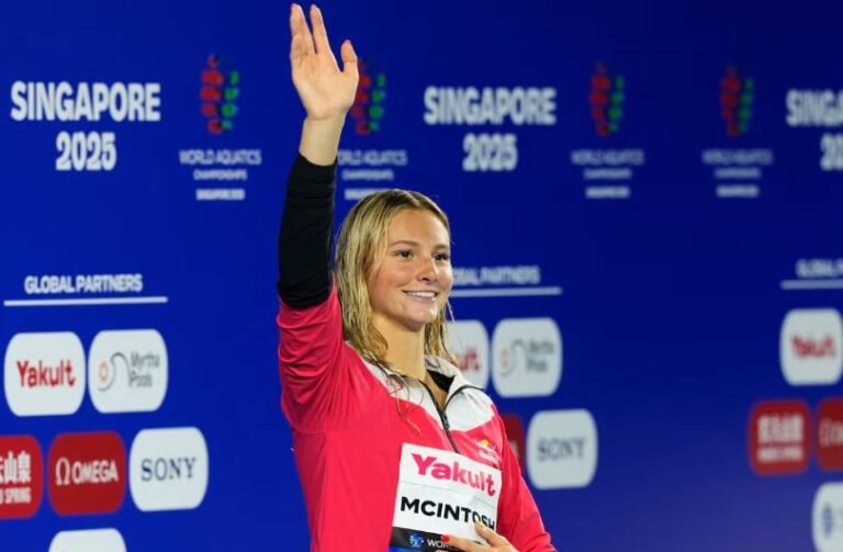 هلا كندا – اختتمت الكندية سمر ماكينتوش، البالغة من العمر 18 عاماً، مشاركتها في بطولة العالم للسباحة في سنغافورة بتحقيق ذهبيتها الرابعة، بعد فوزها الأحد بسباق 400 متر فردي متنوع بزمن قياسي جديد للبطولة.