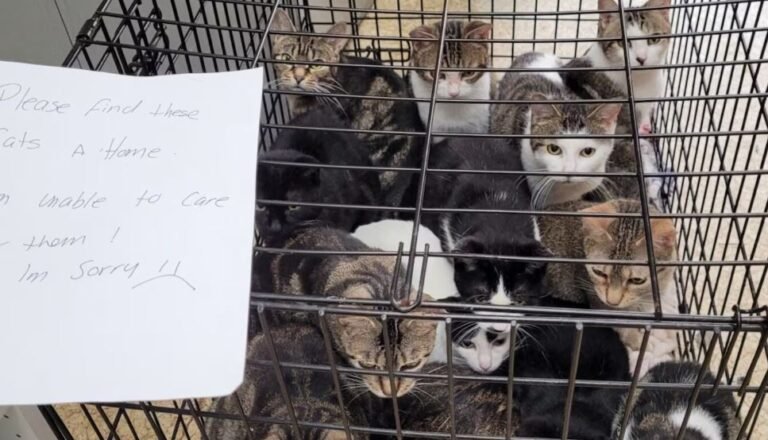 وأضافت أن قطتين من الحالات كانت عبارة عن صناديق مليئة بالقطط، من بينها قفص يحوي 14 أنثى، تُركت في حديقة محلية مع رسالة مكتوبة بخط اليد تقول: “الرجاء إيجاد منزل لهذه القطط، لم أعد قادراً على رعايتها! آسف.”