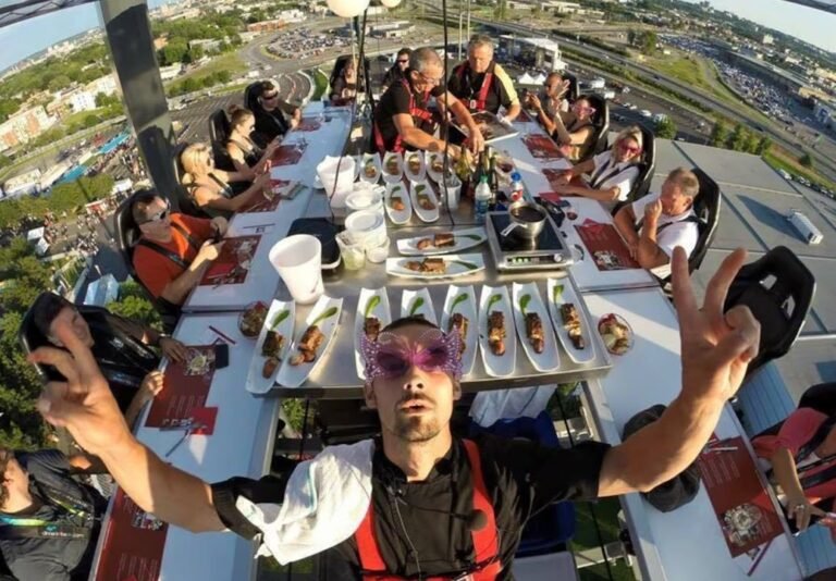 هلا كندا – عاد معرض كندا الوطني (CNE) إلى تورونتو هذا العام، حاملاً معه تجربة فريدة تتيح للزوار تناول الطعام على ارتفاع 150 قدماً في الهواء، فيما يعرف باسم “Dinner in the Sky”.