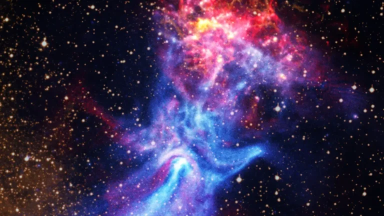 في قلب المشهد يظهر نجم نيوتروني نابض بحجم مدينة صغيرة (قطره نحو 20 كيلومترًا فقط)، يدور سبع مرات في الثانية ويولّد مجالًا مغناطيسيًا أقوى من الأرض بـ 15 تريليون مرة. هذا النابض وُلد بعد أن انهار نجم ضخم على نفسه وانفجر كمستعر أعظم، ناشرًا الحطام في الفضاء.