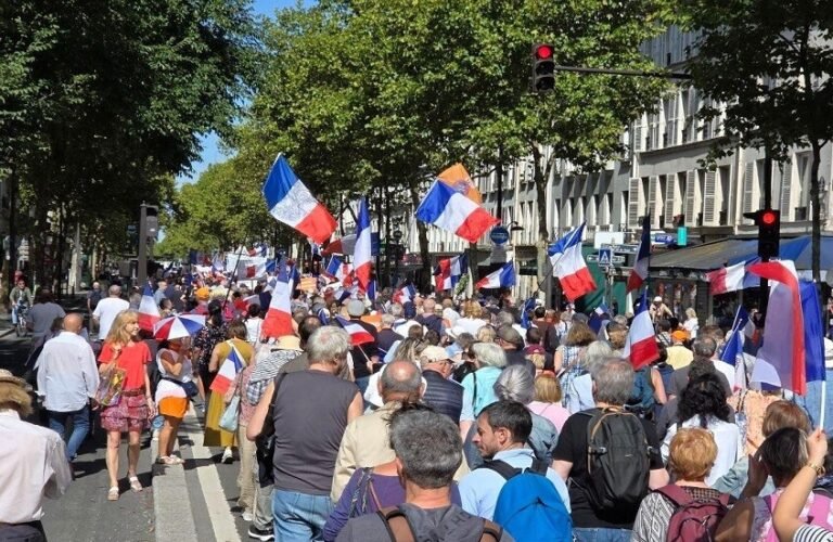 هلا كندا – شهدت العاصمة الفرنسية باريس مظاهرة واسعة شارك فيها أكثر من ألف شخص احتجاجاً على سياسات الحكومة ودعم الغرب لنظام كييف، حيث طالب المتظاهرون باستقالة الرئيس إيمانويل ماكرون ورئيس الوزراء فرانسوا بايرو.