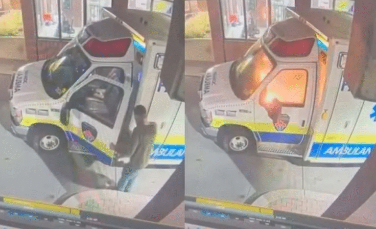 ووفقاً لبيان صادر عن الشرطة، وصلت فرق الإسعاف إلى المستشفى حوالي الساعة السادسة صباحاً لنقل أحد المرضى. وبعد الانتهاء من عملية التسليم وعودة المسعفين إلى السيارة، تفاجأوا بأنها تشتعل بالكامل بالنيران.