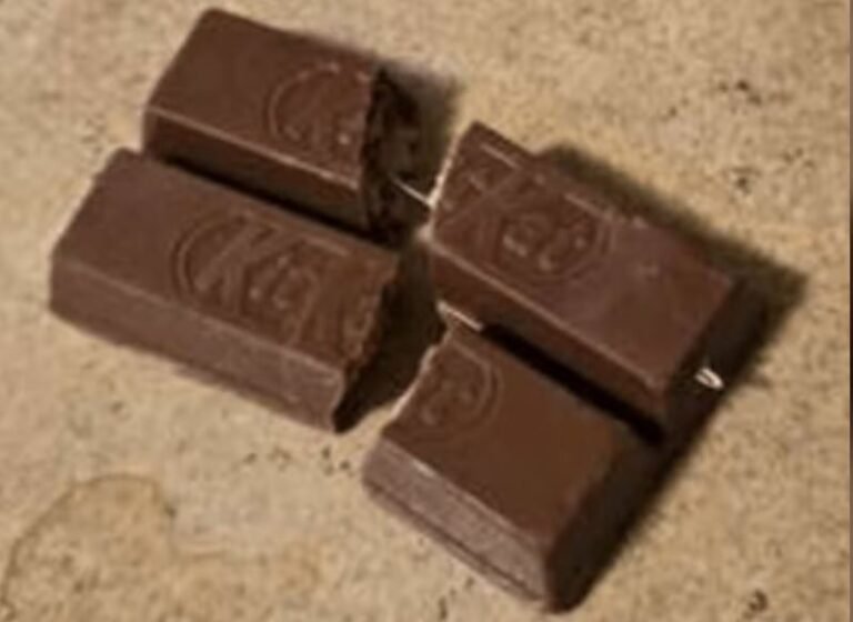 ونشرت شرطة كملوبس صورة لقطعة شوكولاتة صغيرة من نوع “كيت كات” تحتوي على إبرة ظاهرة من أحد أطرافها، موضحة أن التغليف الخارجي قد يبدو محكم الإغلاق رغم وجود الإبرة بداخله.