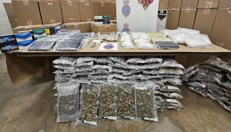 وخلال التفتيش، صادرت الشرطة 12,100 كرتونة من السجائر المهربة تُقدَّر قيمتها السوقية بأكثر من مليون دولار، إلى جانب 5 كغ من الكوكايين المشتبه به، و23 كغ من الحشيش، و12 كغ من الحبوب المخدرة يُعتقد أنها من نوع الإكستاسي والـMDMA.