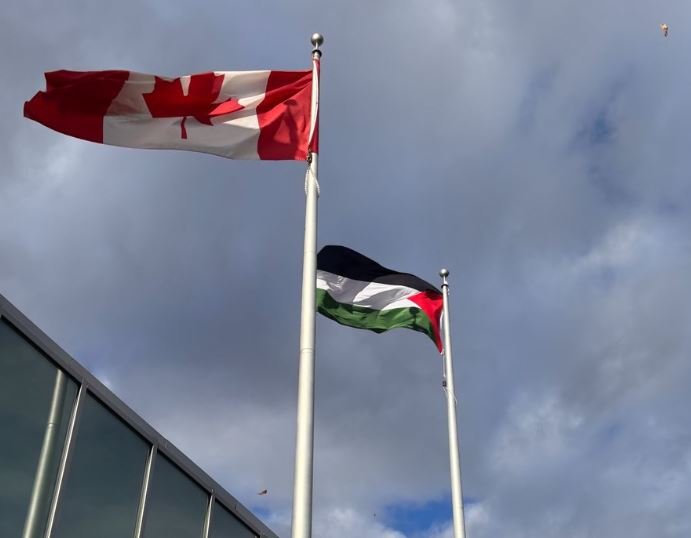 أفادت الجهات المعنية بأن رفع العلم جاء بناءً على طلب المجتمع المحلي، تقديرًا لاعتراف كندا بدولة فلسطين.