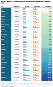 تشير الأرقام إلى أن مدينتي ريجاينا ووينيبيغ هما الوحيدتان حاليًا اللتان تحققان وفورات شهرية فورية عند شراء منزل. ويبلغ متوسط سعر المنزل في ريجاينا نحو 330 ألف دولار، مع دفعة رهن شهرية أقل من متوسط الإيجار بنحو 120 دولارًا. وفي وينيبيغ، يصل متوسط سعر المنزل إلى نحو 378 ألف دولار، مع توفير شهري يقارب 92 دولارًا مقارنة بالإيجار.