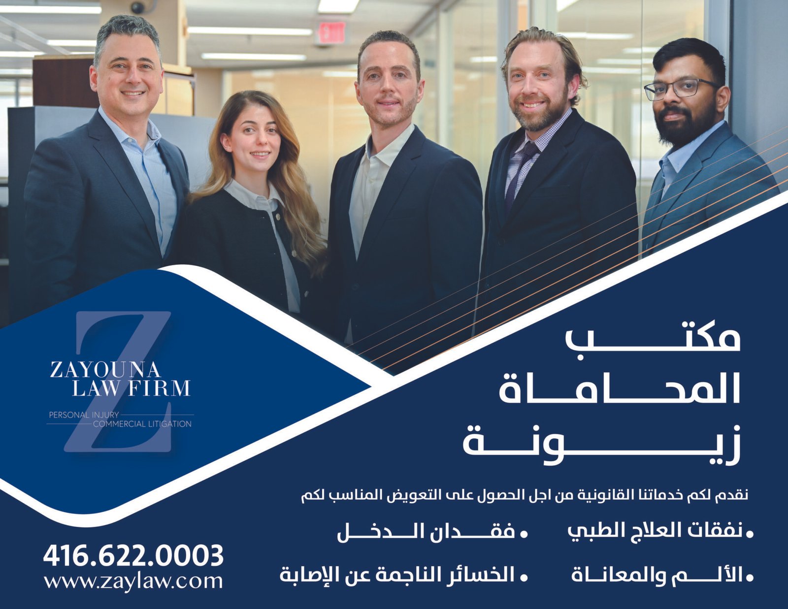 إن وجود محامٍ متخصص ومتمرس في قانون الإصابات الشخصية إلى جانبك أمر مهم وضروري! ونحن في مكتب المحاماة زيونة نتفهم ذلك جيداً حيث سيقوم فريقنا بالدفاع عن حقوقك، والتفاوض نيابة عنك، والعمل نحو تحقيق أفضل نتيجة ممكنة لقضيتك.