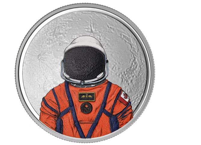 وتحمل العملة تصميمًا يظهر رائد فضاء يرتدي بدلة نظام النجاة Orion، مع وجود العلم الكندي على الكتف، وخلفه نقش للقمر.