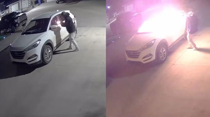 ويُظهر الفيديو الصادر عن شرطة ريجاينا (RPS) اقتراب شخص من مركبة كانت متوقفة داخل ممر منزل سكني، قبل أن يقوم بإشعال عود ثقاب ومحاولة إدخاله عبر نافذة السائق.