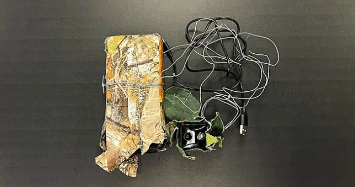 وأوضحت الشرطة أن الحادثة وقعت في 16 أبريل، عندما اكتشف أحد السكان جهاز تصوير وبطارية مخفيين داخل شجيرات ومغطّيين بشريط تمويه.