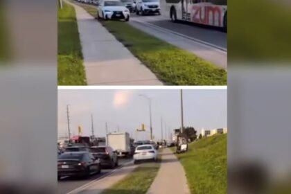 فيديو – توقيف سائق قاد سيارته على رصيف مزدحم لتجاوز الازدحام في برامبتون